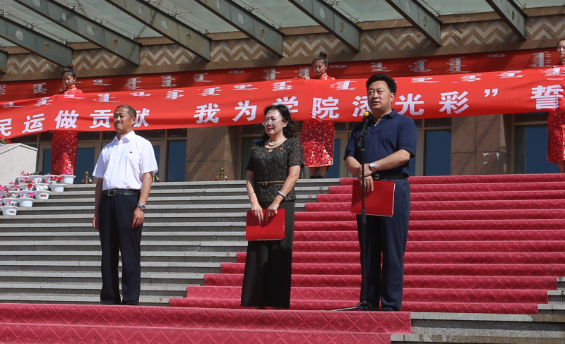 7月2日上午,为了向来自各地的嘉宾、运动员们提供文明、优质、便捷、高效的服务,展现我院青年学子的青春风采,我院于主楼前广场隆重举行“我为民运做贡献 我为学院添光彩”誓师大会。学院党委副书记、院长张廷,学院党委委员、副院长张建华,学院党委委员、副院长其其格,各系负责人、民运会志愿服务安保后勤保障负责人、全体学管人员以及参加民运会工作全体同学参加本次大会。大会由学院党委委员、副院长其其格主持。本次大会的召开标志着学院正式进入全区第九届全区少数民族传统体育运动会10日倒计时。